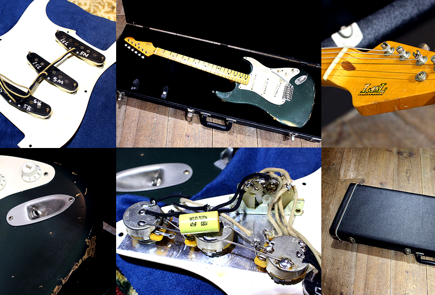 | 主な仕様 | Color : Sherwood Green Body : Ash Neck : Maple Fingerboard : 7.25″R/ 21frets Nut Width : 42mm Control : Volume, Tones & 5way Blade SW Serial Number : “Estaphanie”, #482 |